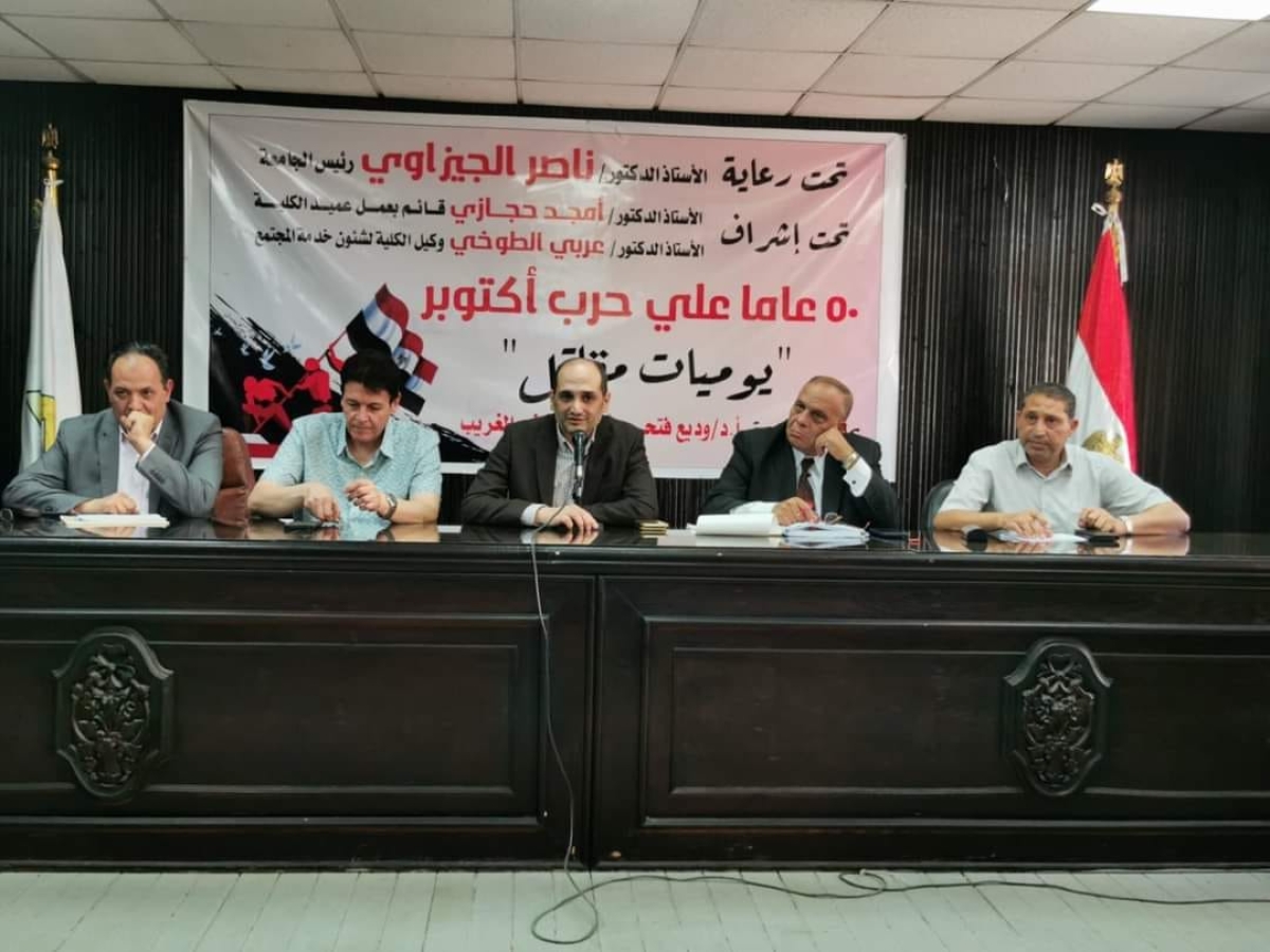 في إطار حرص جامعة بنها على بناء الوعي المجتمعي ، والقيام بدورها في توعية وتثقيف المجتمع ، عقدت كلية الآداب ندوة تثقيفية بعنوان " 50 عاما علي حرب أكتوبر، يوميات مقاتل "