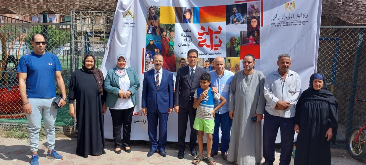 من جانبه أكد الدكتور ناصر الجيزاوى أهمية مشاركة ودعم جامعة بنها لتبني المبادرات التي يطلقها فخامة الرئيس عبد الفتاح السيسي رئيس الجمهورية، ومنها المشروع القومي للتنمية البشرية "بداية جديدة لبناء الإنسان" والذي يستهدف استفادة المواطنين من جميع موارد الدولة بعدالة وفاعلية، وتطوير كافة الخدمات في مجالات الصحة والتعليم والرياضة والثقافة والعمل، لتحقيق التنمية المتسدامة ورؤية مصر ٢٠٣٠ .