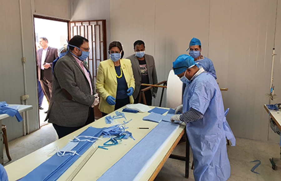 واشادت مصطفى بالجهود المبذولة من العاملين داخل الورش واصرارهم على العمل ساعات متواصلة لتصنيع الكمامات وتوفيرها للمواطنين والمجتمع المحيط.