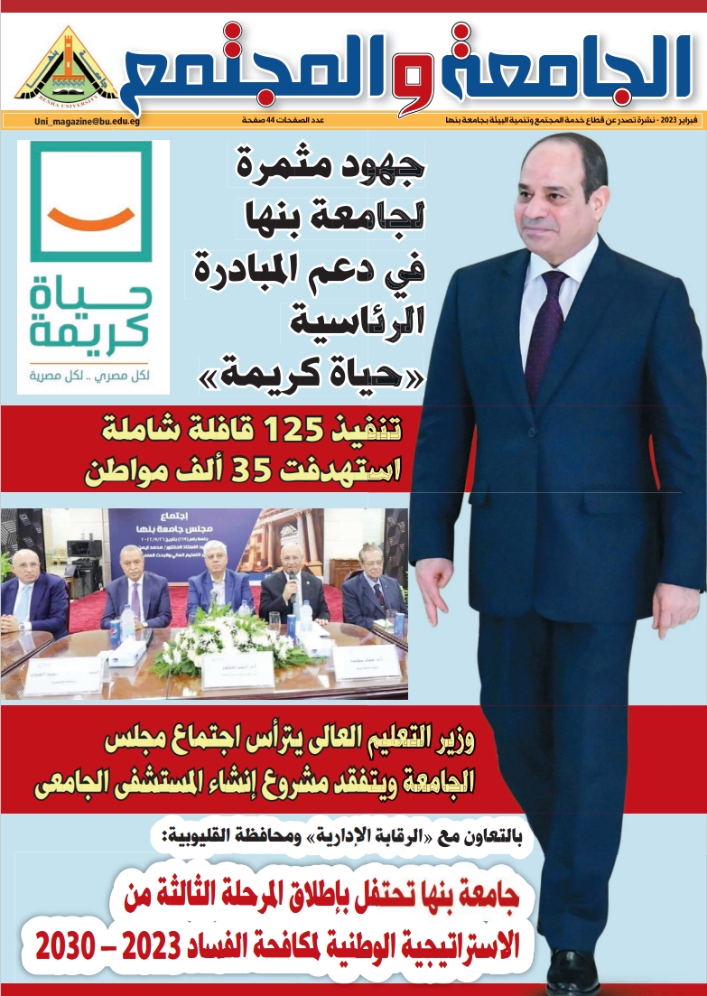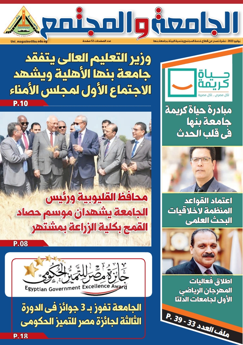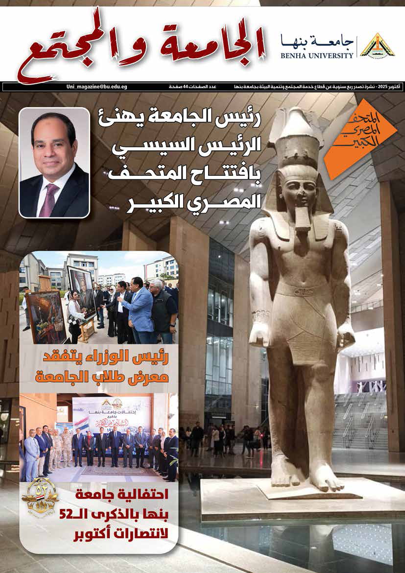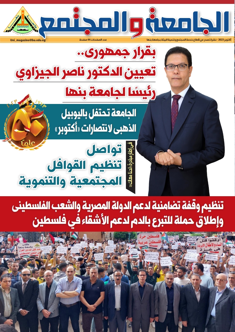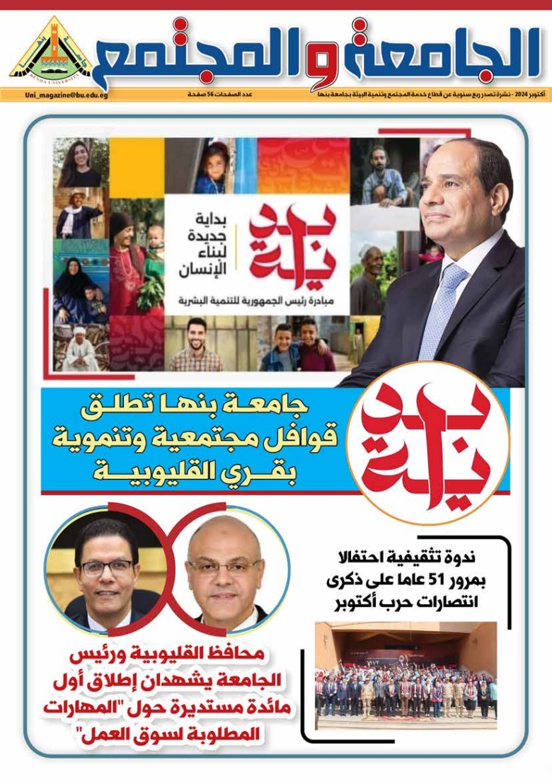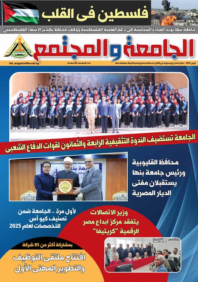 مجلة ربـع سنـوية تـصدرعن قطاع خدمة المجتمع وتنمية البيئة بالجامعة وقد تم إصدار العـدد الأول فى 1 / 1 / 2010 وتشتمل المجلة على الأبواب التالية: أخبار الجامعة - تحقيقات وتقارير عن الجامعة والمجتمع - أخبار المجتمع المحلى - الرأى والرأى الآخر - مواهب أدبية - إجتماعيات - وسوف يضم العدد القادم باب الرياضة وباب الحوادث .
